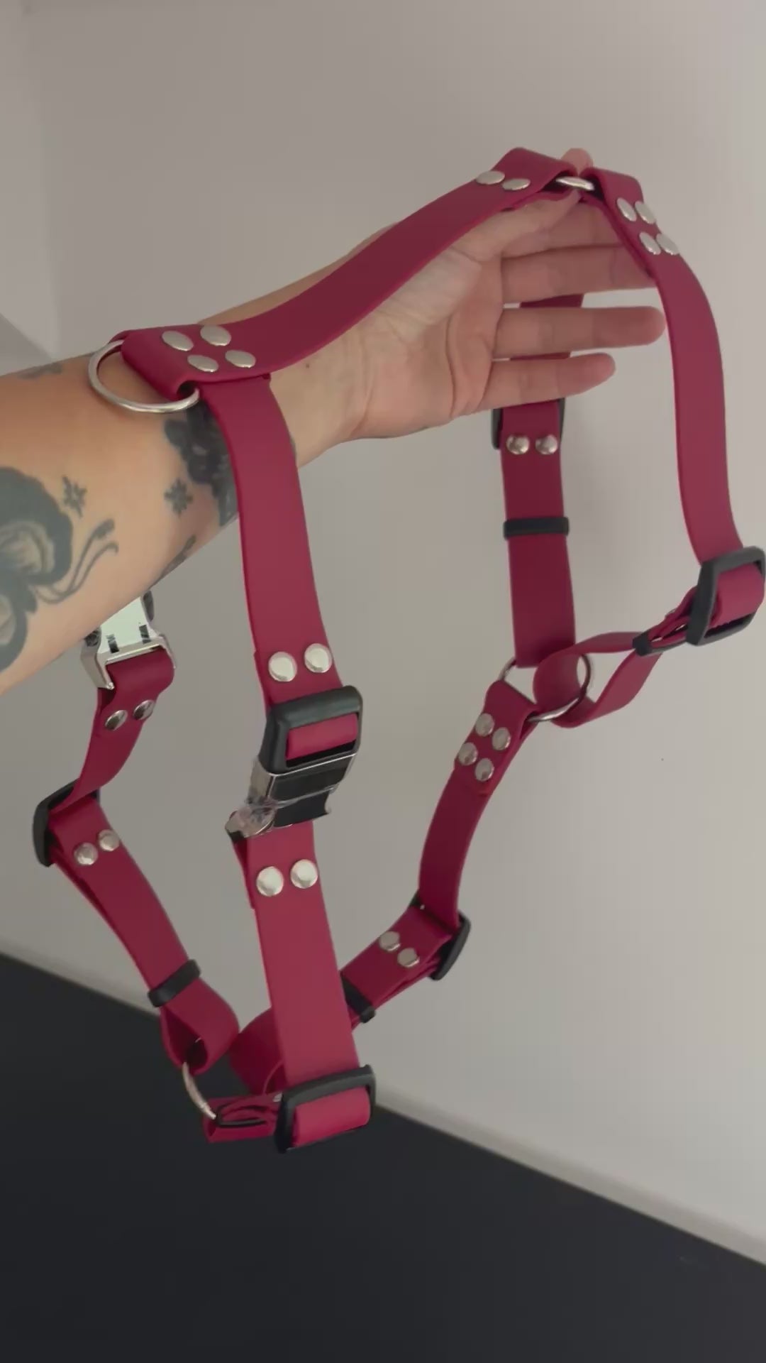 Les harnais Scarlett & Joyce sont entièrement conçus à la main dans notre atelier dans les hauts de France. Ils sont composés d'une sangle TPU étanche connue pour sa facilité d'entretien et sa longévité