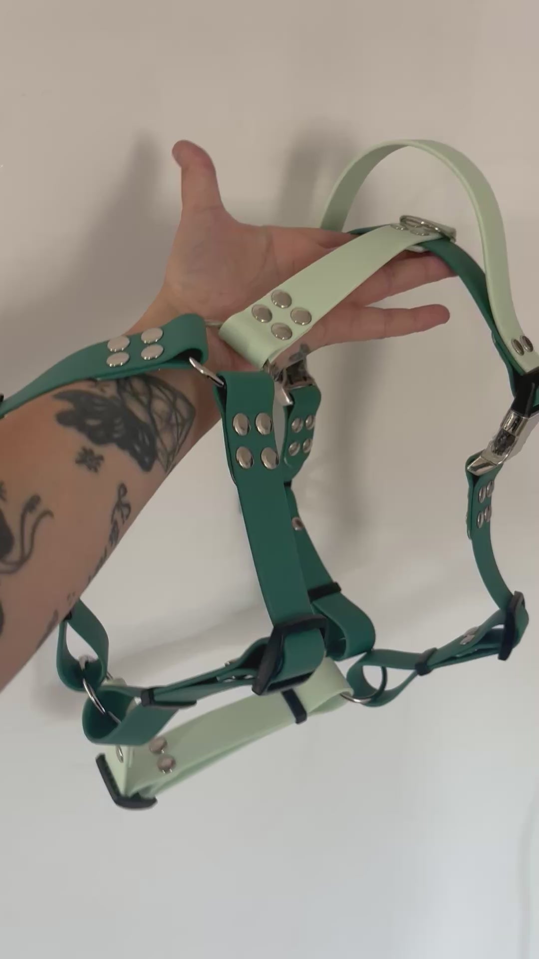 Les harnais Scarlett & Joyce sont entièrement conçus à la main dans notre atelier dans les hauts de France. Ils sont composés d'une sangle TPU étanche connue pour sa facilité d'entretien et sa longévité